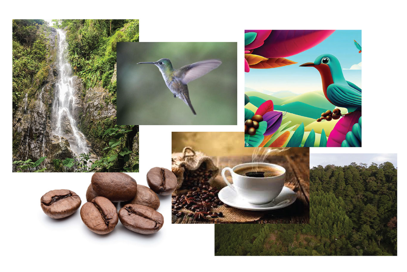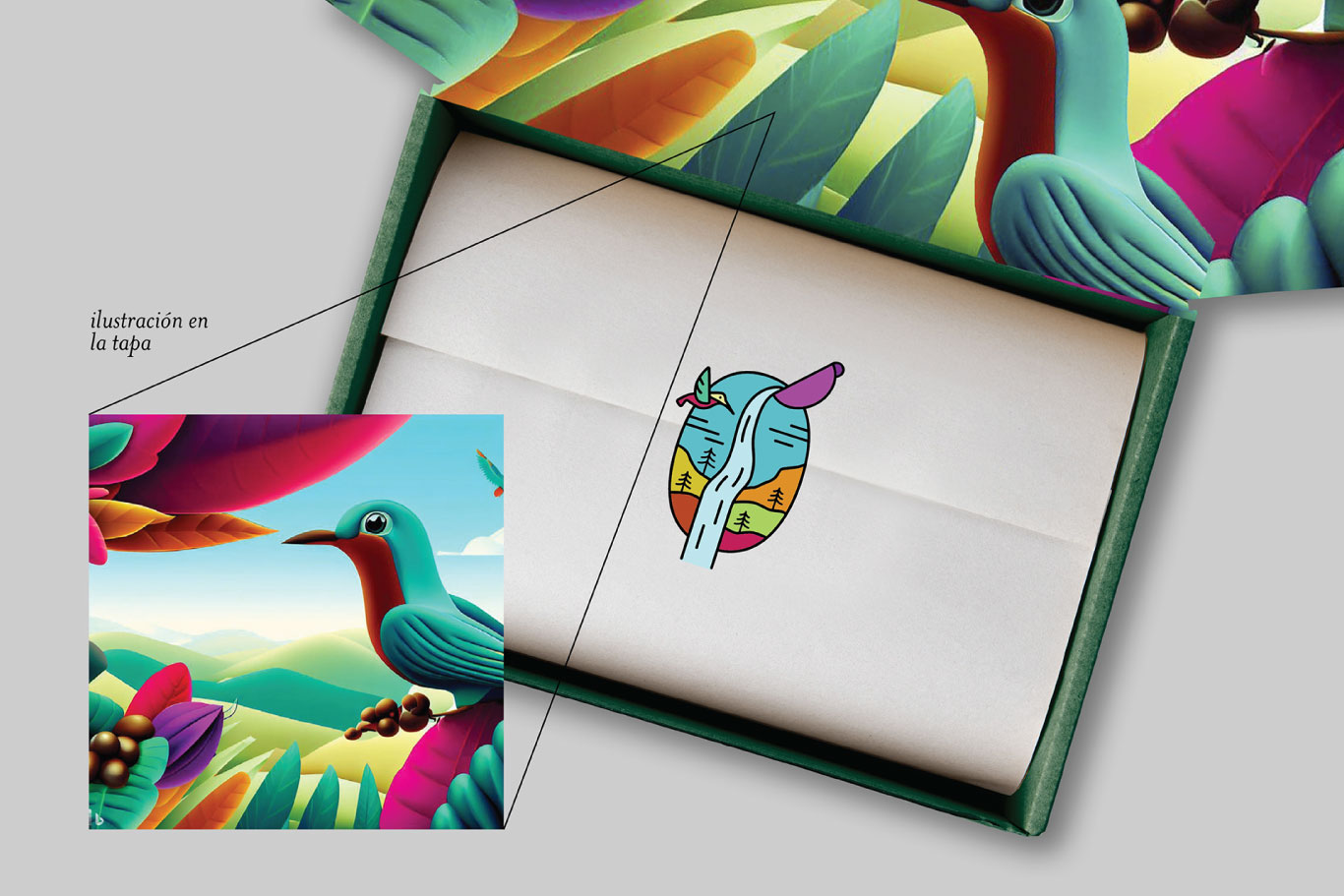 El logo, inspirado en la energía viva del bosque —sus cascadas, aves y paisajes en movimiento— expresa la pureza del entorno y la complejidad de los sabores que solo pueden surgir en un microclima como este. Una marca que honra la sostenibilidad, la calidad y la magia que habita en cada taza.
