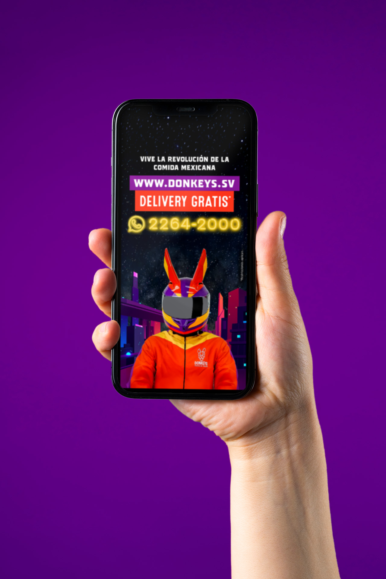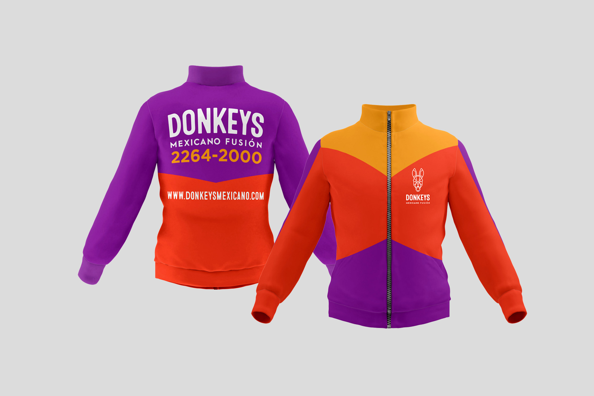 Para Delivery Donkeys, nos propusimos algo más grande que diseñar uniformes: queríamos transformar a cada repartidor en un personaje inolvidable. Así nació una identidad que literalmente se lleva puesta. Diseñamos cascos con orejas de burro, chumpas y mochilas en la paleta de la marca, convirtiendo al driver en un Donkey viviente, fácilmente reconocible en cualquier calle.